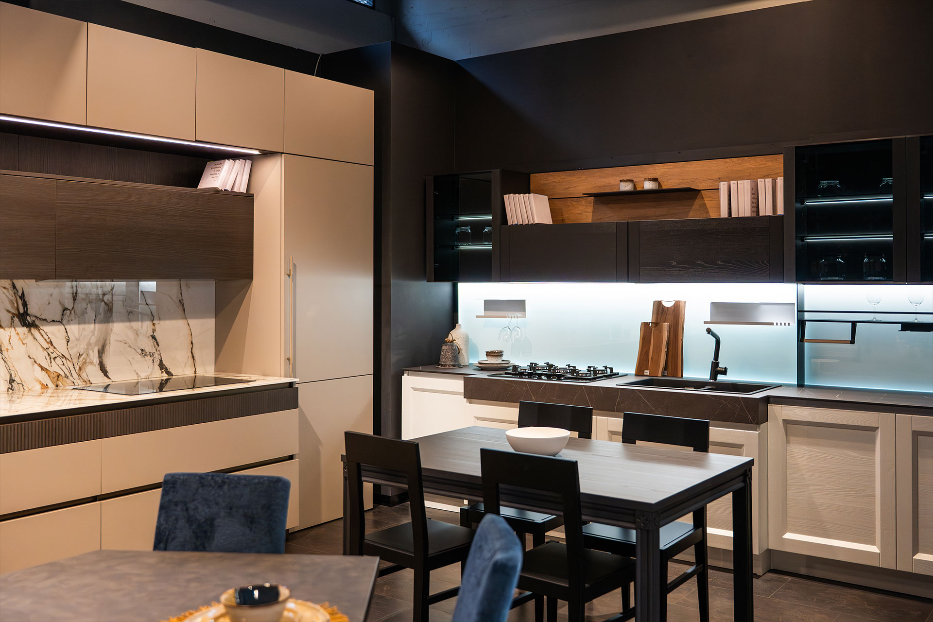 Pensata per un pubblico amante dello stile pulito e in grado di dare massimo risalto ai contrasti materici e cromatici delle finiture, Karma si distingue per l’anta con presa maniglia integrata che definisce e decora la cucina con tre tipologie di apertura: maniglia totale, maniglia parziale, contropresa maniglia, dettagli che contribuiscono a un look originale che al contempo garantisce massima funzionalità.